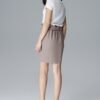 Fitted cut, slightly tapered towards the bottom. Slide pockets on the hips. A characteristic feature of the skirt is pleated top which gives it a subtle character. Model with rubber band and tie belt.