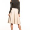Elegant flared midi skirt made of eco-leather. This skirt has a decorative zip at the side.