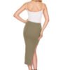 Fitted basic skirt. Skirt in pencil cut, with an opening at the side. The material adapts to the figure.