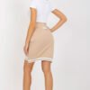 Tracksuit skirt with a high waist, an elastic band and binding. Skirt with pockets, bottom with welt. Ideal for summer.