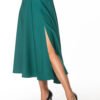 Elegant mid-calf skirt with a slit on the left side. The skirt is fastened with a decorative zipper.