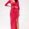 A maxi skirt made of soft and pleasant knit fabric. Crease from the waist down finished with a slit on the leg in the form of a strut. The cut of the skirt beautifully emphasizes the figure. Designed and sewn in Poland.
