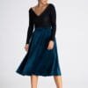 Elegant midi skirt that emphasizes the waistline. The waist is elastic, and the length of the skirt reaches the calves and is subtly flared.