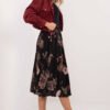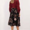 A bomber skirt with an elegant character, ideal both for everyday wear and for work or formal occasions. It is made of polyester, with a viscose lining, which ensures comfortable wear and breathability. There is an elastic waistband, which guarantees a comfortable fit, and practical pockets hidden in the side seams add functionality. The midi length skirt, with a floral print, combines elegance with lightness and feminine style. The lack of a clasp emphasizes its minimalist design, ideal for various occasions.