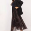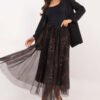 This tulle midi skirt with viscose lining is a stylish choice for women who value both elegance and comfort. Ideal for a variety of occasions, from parties to everyday styling, the skirt will be perfect for both formal meetings and casual outings. Made of high-quality polyester, it is characterized by its lightweight and airy feel for comfortable all-day wear. The dominant pattern on the skirt is an animal print, which adds a drab touch. There is a practical tie at the waist, which allows for a perfect fit, and the viscose lining makes the skirt pleasant to the touch and fits well on the body. This tulle skirt is sure to become a favorite piece of any closet.