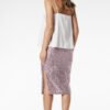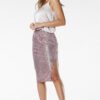 Evening sequin pencil midi skirt. The sequin pencil midi skirt from the Polish brand Awama is the quintessence of elegance and style. Ideal for special occasions such as weddings, parties or dinners. The skirt made of sequin fabric beautifully reflects light, adding shine to any outfit. The pencil cut accentuates the silhouette, and the elastic waistband ensures a perfect fit and comfort. Side slits introduce a sensual accent, and the lining guarantees comfort. It pairs perfectly with a satin blouse or top, creating an elegant look for any celebration.