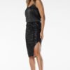 Evening sequin pencil midi skirt. The sequin pencil midi skirt from the Polish brand Awama is the quintessence of elegance and style. Ideal for special occasions such as weddings, parties or dinners. The skirt made of sequin fabric beautifully reflects light, adding shine to every outfit. The pencil cut accentuates the silhouette, while the elastic waistband ensures a perfect fit and comfort. Side slits add a sensual touch, and the lining guarantees comfort. It pairs perfectly with a satin blouse or top, creating an elegant look for any celebration.