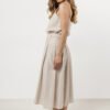 Classic and comfortable, this skirt is a perfect combination of style and comfort. The flared cut with pleats beautifully flows in motion, while the wide waistband with belt loops and a belt emphasizes the waist. Made from natural, soft cotton, it offers lightness and breathability, making it ideal for everyday wear and special occasions. Pair the skirt with a top or shirt made from the same fabric to create a trendy summer look.
