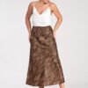 Midi skirt made of satin fabric. Elastic band sewn in at the waist.