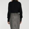 Elegant women’s skirt in a fit cut, fitted to the silhouette, made of material with a mottled texture and uneven color, which gives it a unique character. The model is knee-length, making it versatile and suitable for both office and casual styling. At the back, there is a decorative zipper along the entire length of the skirt, adding a modern touch. For comfort, the skirt has a lining, providing comfort and an elegant finish.