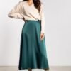 Satin midi skirt is a classic and elegant wardrobe piece. The delicate sheen of the fabric adds a unique character to the styling, working well both for everyday wear and for more formal occasions. The high waist beautifully emphasizes the waist and visually elongates the silhouette. The flared cut provides freedom of movement and lightness, while the knee-length adds timeless elegance to the whole look.