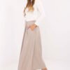 This elegant midi skirt is the perfect combination of classic style and comfort, perfect for everyday wear, work, or more formal occasions. Made of high-quality polyester and elastane blend, it provides comfort, durability, and beautiful material draping. The smooth textured model stands out with a pleated front, adding lightness and feminine character. At the back, there is an inserted elastic band that perfectly fits the silhouette and ensures comfort throughout the day. Additional advantages are side pockets and a decorative button, subtly emphasizing the elegant style of the model. The lack of fastening makes the skirt extremely practical and easy to put on. It is a versatile wardrobe piece that will work perfectly in office stylings as well as during meetings in a more formal tone.