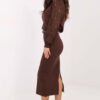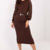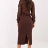 Elegant knitted skirt made of ribbed fabric, which beautifully fits the silhouette and emphasizes feminine shapes. Thanks to the high-quality blend of viscose and polyester, the model is soft, elastic, and very comfortable to wear. The skirt has a midi length, which gives it a chic character and makes it perfect for formal occasions, work, and everyday wear. A waistband with elastic has been sewn in, ensuring a perfect fit and comfort throughout the day. Additionally, the model is equipped with a fastened belt that emphasizes the waist and adds elegance to the styling. At the back, at the bottom, there is a subtle slit that increases freedom of movement and adds lightness to the skirt. The lack of a traditional closure makes it extremely comfortable and easy to put on. This is a universal proposition for women who appreciate elegance, comfort, and timeless style.