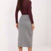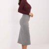 Elegant knit skirt with a smooth pattern, perfect for everyday wear, work, and more formal occasions. Made of high-quality blend of viscose and polyester, it guarantees comfort, softness, and gentle elasticity, perfectly fitting the silhouette. The midi length model presents a timeless, classic style. There is an elastic band in the waist, thanks to which the skirt fits perfectly and provides comfort throughout the day. The lack of fastening makes it extremely practical and easy to put on. Decorative buttons are placed on the front, adding elegance to the whole and subtly enhancing the minimalist cut. This is the perfect choice for women who appreciate the combination of class, comfort, and universal style.