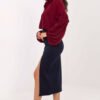 Stylish, elegant midi length skirt, perfect for formal occasions, parties and evening outings. Made of a blend of viscose and nylon, making the material pleasant to the touch, slightly elastic and beautifully draping on the silhouette. The dominant smooth pattern emphasizes the classic, timeless character of the model. The skirt has a front slit, which adds a modern, feminine touch while providing freedom of movement. There is a fastened belt at the waist, allowing for a perfect fit and emphasizing the feminine silhouette. The whole is fastened with a concealed zipper, maintaining an elegant, minimalist look.