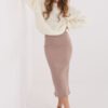 Knitted midi skirt made of soft, ribbed material providing high comfort. A casual style model that will work well in everyday outfits as well as as a part of a work outfit. Its smooth pattern gives it a universal character and makes it easy to combine with various styles of blouses or sweaters. At the back, at the bottom, there is a practical slit that emphasizes the silhouette and ensures freedom of movement. The skirt is made of cotton with the addition of elastane, making it elastic, pleasant to the touch, and well-fitted to the figure. The lack of fastening emphasizes the simple, comfortable form of the model.