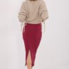 Knitted midi skirt, made of soft, ribbed material ensuring high wearing comfort. A casual style model that will work well in both everyday stylings and as part of a work outfit. The smooth pattern gives it a universal character and makes it easy to combine with various styles of blouses or sweaters. At the back, there is a practical slit at the bottom, which emphasizes the silhouette and provides freedom of movement. The skirt is made of cotton with the addition of elastane, making it elastic, pleasant to the touch, and well-fitting to the figure. The lack of fastening emphasizes the simple, comfortable form of the model.