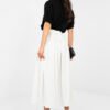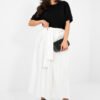 An elegant midi skirt with a flared cut is a perfect choice for women who appreciate classic style with a touch of modernity. The high-waisted model beautifully accentuates the waist, and the elastic waistband ensures a perfect fit and comfort all day long. The skirt is made of striped material, which adds a stylish character and visually slims the silhouette. The set includes a sewn-on tie belt, allowing to further accentuate the waist and give the outfit an individual expression. Practical slip pockets increase the functionality of the model. Made of a combination of polyester, viscose, and elastane, it combines durability with softness and elasticity, guaranteeing comfort and an elegant look in both office and special occasion outfits.