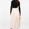 An elegant midi skirt with a flared cut is a perfect choice for women who appreciate classic style with a touch of modernity. The high-waisted model beautifully accentuates the waist, while the elastic band sewn into the waist ensures a perfect fit and comfort throughout the day. The skirt is made of striped material, which adds a stylish character and visually slims the silhouette. The set includes an attached tie belt, allowing you to further emphasize the waist and give the styling an individual expression. Practical slip pockets increase the functionality of the model. Made of a combination of polyester, viscose, and elastane, it combines durability with softness and elasticity, guaranteeing comfort and an elegant look in both office outfits and special occasions.