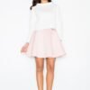 Very feminine and elegant mini skirt which exposes the legs. The flared cut perfectly hides the flaws of hips and thighs. Model beautifully arranged on the figure. Laser cut bottom. A must-have item in every woman’s wardrobe. Ideal for high heels and sporty combinations with ballerinas or sandals.