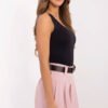Casual skirt shorts are a perfect combination of elegance and comfort, ideal for everyday wear, work, and formal occasions. Made of high-quality polyester and elastane blend, they provide comfort and freedom of movement. The model stands out with a pleated front insert, giving it a subtly elegant look, creating the effect of a skirt while maintaining the practicality of shorts. The high waist with an elastic band emphasizes the silhouette, and an additional fastened belt allows for a perfect fit. Wide legs add lightness and a modern character. The universal, smooth pattern makes the skirt shorts look great with both elegant shirts and looser blouses, creating stylish and comfortable outfits.