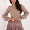 Plaid skirt shorts are an elegant and stylish proposal for women who like to combine the comfort of shorts with the feminine look of a skirt. The front of the model is adorned with a pleated skirt insert, adding chic to the whole and subtly masking the shorter shorts. An elastic band is sewn into the waist at the back, so the skirt shorts fit perfectly to the silhouette and ensure comfort throughout the day. The dominant plaid pattern emphasizes their elegant character, and the high waist optically lengthens the legs and beautifully accentuates the waist. Wide legs give lightness and freedom of movement, while maintaining a stylish, subdued look. The model is made of a polyester and viscose blend, making it breathable, durable, and pleasant to the touch. Skirt shorts do not have pockets or a traditional closure, giving them a minimalist line, but they are equipped with a fastened belt, which is a practical and decorative element of the whole. It is an ideal choice for everyday stylizations and for work, when you want to look elegant, and at the same time feel comfortable and free.