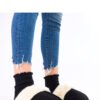 Women’s slippers with fur, perfect for colder days. Made of soft fabric, they have insulation and a pleasant to touch insole that ensures comfort while wearing. Slip-on model with a round toe and a light 1 cm sole guarantees everyday comfort. These practical and stylish home shoes combine warmth, functionality, and a cozy look.