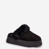 Women’s slippers made of eco suede are a comfortable and stylish option for cold days. Set on a platform, they provide comfort and lightness, and their interior lined with fur guarantees warmth and coziness. The model with an open heel is equipped with an elastic band, which makes it easy to adjust and makes the slippers easy to put on. Perfect for wearing at home and outside.