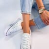 Classic women’s sneakers on a high sole. This timeless cut is a fashionable, proven and irreplaceable choice! Sneakers are also comfortable to wear – they are the perfect shoes for every day : ) Outer + inner material ? fabric.
