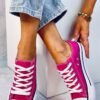 Classic women’s sneakers on a high sole. This timeless cut is a fashionable, proven and irreplaceable choice! Sneakers are also comfortable to wear – they are the perfect shoes for every day : ) Outer + inner material ? fabric.