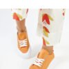 Eduard’s orange Adidas sneakers made from textile material are innovative footwear featuring a rubber sole that provides unmatched comfort for everyday wear. Their low profile and lacing make them perfect for all-day use. The revolutionary design with a rounded toe gives them a modern look that is sure to attract attention. These sneakers are an excellent combination of style and comfort for those who value both convenience and a fashionable appearance.
