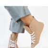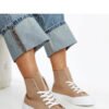 The brown high-top sneakers Vinka are the ideal choice for lovers of modernist style. Their elegant design makes them look wonderful both in everyday life and on special occasions. The lace-up boots have a round toe, which gives them personality. Made from high-quality materials, they provide comfort throughout the day. Additionally, the rubber sole ensures stability and comfort while walking. This model represents an excellent combination of modernity and classic style, which will delight any streetwear fan.