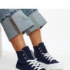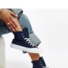 The navy high-top sneakers Vinka are an excellent choice for anyone who values fashionable and stylish footwear. Made from high-quality rubber, they provide comfort throughout the day. The round toe gives the shoes a very contemporary look, while the lacing guarantees a perfect fit. These trendy sneakers will be a great addition to any casual style. Upper material: Fabric. Insulation: None. Sole material: Rubber. Sole color: White. Fastening: Laced. Collection: Summer/Spring.