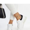 White high sole sneakers Zrina are sports shoes with a high sole that are both unique and extremely popular. The lace-up closure ensures a perfect fit on the foot, and the round toe adds an extra touch of style. These sneakers are a true hit among sports footwear! The outer material is made of synthetic leather, and the sole is made of white rubber. They are a perfect choice for the spring/summer collection.