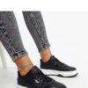 Black sneakers on a thicker sole by Intisa Adidas are an excellent choice for the younger generation that values a fashionable and stylish look. They feature a low design with a round toe, making them very trendy. Made from lace-up material and equipped with a rubber sole, they provide comfort and excellent grip on the ground. These fashionable shoes with a thick sole perfectly complement any casual outfit.
