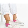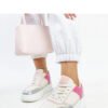 The white and pink chunky-soled sneakers by Rumai Adidas are the perfect choice for the younger generation. They feature a round toe and are lace-up, ensuring a perfect fit for the foot. Their modern design makes them a great complement to any urban outfit. Made from rubber, they provide comfort and ease for everyday wear. These low shoes with a thick sole are a must-have in the wardrobe of every streetwear fan!