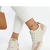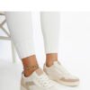 Beige glitter sneakers Juwan Sneakers-ii are the perfect choice for all streetwear style lovers. Made from high-quality rubber, these sneakers feature a round toe and are laced up, ensuring stability and comfort during wear. Their low profile makes them a perfect match for both jeans and skirts. Additionally, the sparkling accent gives them a unique character that will make you stand out from the crowd. These affordable, contemporary, and modern sneakers will be an excellent addition to your footwear collection. Offering an attractive design and a sparkling appearance, these sneakers are ideal for the summer and spring seasons.