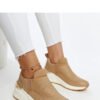 The sneakers feature a comfortable wedge that not only adds a few centimeters in height but also ensures wearing comfort. The sole is made of durable plastic in a brown color, which perfectly matches the rest of the shoe.
