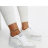The white-gray platform sneakers Walda are an excellent choice for the upcoming spring and summer. Their unique design makes them a perfect complement to many summer outfits. The sneakers feature a lace-up closure, ensuring a perfect fit to the foot. The sole material is high-quality rubber, which provides comfort and ease while wearing. Additionally, the white sole color gives the sneakers a very stylish appearance. There is no insulation, making them ideal for warm days. These sneakers will surely become your favorite footwear in your collection!