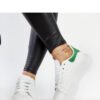 White and green eco-leather Fatimah sneakers are the perfect choice for those who value comfort and casual style. They will work perfectly for everyday wear, especially in the summer days, adding a touch of modernity and trends to every outfit. The low heel and rubber sole provide comfort for all-day wear, and the lace-up closure allows for a perfect fit. Their round toe adds lightness and elegance, making them the perfect addition to any fashionable woman’s wardrobe. The sneakers are made of high-quality eco-leather, and the white sole adds a fresh touch. This footwear is perfect for a walk in the city or a meeting with friends. Ideal for summer!