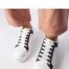 White platform sneakers from Gosselin are the perfect summer proposal for all lovers of comfortable footwear. The sizing is standard, so we recommend sticking to your usual size. The sneakers have a low profile and no insulation, making them a great choice for warmer days. They are made of high-quality materials, and the sole is made of white rubber. The lace-up closure ensures a secure and stable fit to the foot. These summer collection sneakers will be a great addition to your summer wardrobe and will add style to any casual outfit.
