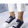 Navy blue platform sneakers from Bellemare are extremely stylish footwear that will be a perfect addition to any streetwear outfit. Made of high-quality fabric, they have a comfortable insole made of textile material and a rubber insert stiffening the toes. The ankle-high upper is decorated with delicate stitching, and the thick sole adorned with vertical grooves gives them a modern character. These sneakers go perfectly with trendy jeans and an oversized sweatshirt. Standard sizing, so just choose your size. Perfect for summer!