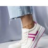 Olympia is a creamy sneakers with charming pink inserts that add delicacy and feminine charm to them. Made of high-quality materials, they provide comfort and a stylish look. They have a lace-up closure that allows for a perfect fit to the foot. Perfect for summer as they do not have insulation, and their black rubber sole ensures stability and comfort while walking. Olympia is an excellent choice for those who value comfort and stylish design in one.