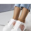 White sneakers adorned with a pink buckle by Toni are the perfect proposal for lovers of comfortable yet stylish footwear. The sneakers have a white rubber sole and a lace-up closure that provides stability and comfort when worn. The pink buckle adds character and originality to them, making them a perfect addition to summer stylizations. Perfect for summer!