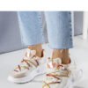 Beige sneakers made of combined materials from the Traci brand are the perfect choice for people who value comfort and style. The shoes have a white sole made of durable rubber, which provides stability while walking. This model is fastened with traditional laces, allowing for a perfect fit to the foot. Sneakers will be perfect for summer, adding a casual character to any outfit.