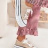 Women’s canvas sneakers set on a massive platform are a fashionable proposition for everyday wear. Laced up, with additional gold accents that give them a stylish touch. Perfect for casual outfits, combining comfort with a modern look, they go well with both pants and dresses.