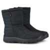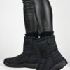 Women’s snow boots set on a thick rubber platform. Made of textile material with decorative stitching. The center is insulated with fur. On the side zipper for easy putting on. Perfect for cold days! You should definitely have them.