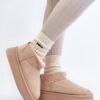 Women’s snow boots set on a thick sole, which is great for insulating from the cold ground. Made of eco-suede. Model with low upper for the ankle. The center is insulated with thick fur. You can match this fashionable cut to almost any styling!