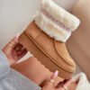 Snow boots made of eco suede on a platform are a stylish and functional choice for winter. The upper decorated with fur and a trendy pattern adds character to them, and the raised platform insulates from the cold ground, providing warmth and comfort. Perfect for freezing days, they combine comfort with fashionable design.
