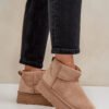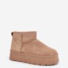 Women’s snow boots made of eco suede. Set on a massive platform made of rubber material. Ankle-high upper. The inside is lined with fur. This fashionable model will be perfect for almost any autumn-winter styling! You definitely should have them!